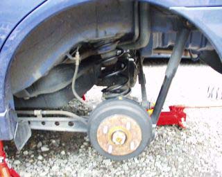 両方のボルトをはずしたら、ジャッキをおろします。すると、スプリングが外れます。