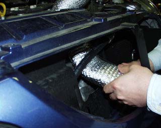 吸気ダクト・・・・まだまだやる気はなかったはずが・・・t-snow-3s君の甘い誘いにのってしまい、この日急遽つけることに・・・(ほんとは、ホイールの再塗装お願いにいったんですが・・・)