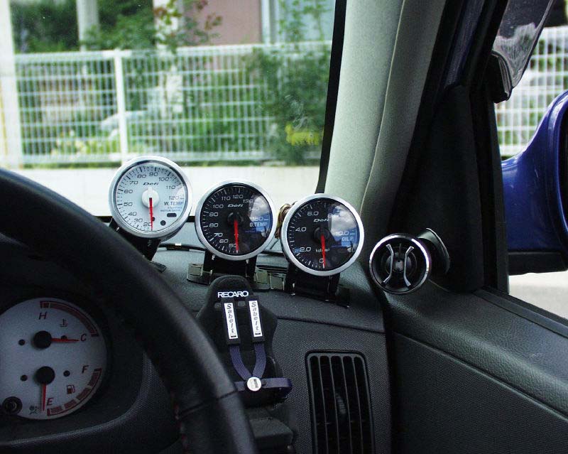 セパレート型スピーカーでやっかいなのが、このトゥイーターユニットの取り付けです。ぶりちゃん号は、すでに3連メーターを装備していますので、つける場所がなかなか見つかりません。ダッシュボードのねじ隠し蓋を使用するかともかんがえましたが・・・メーターに完全に隠れてしまうので、やめました